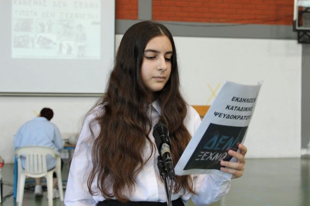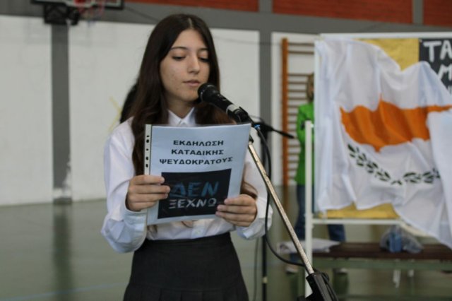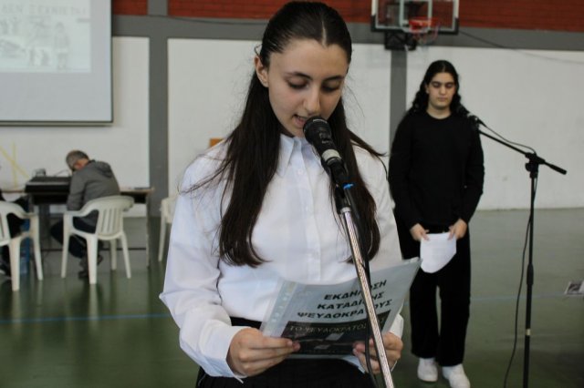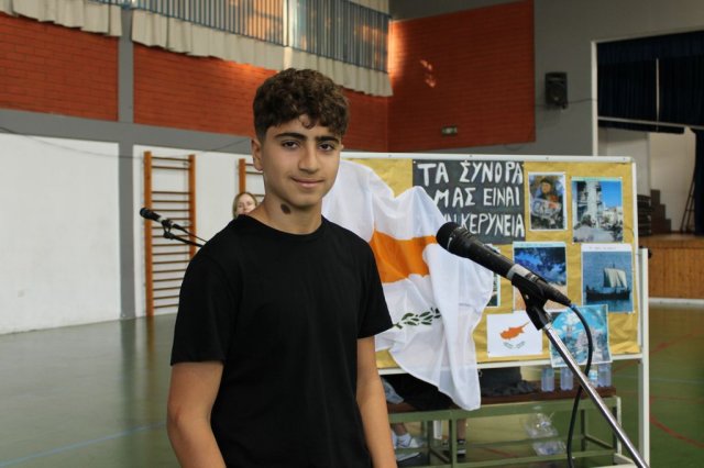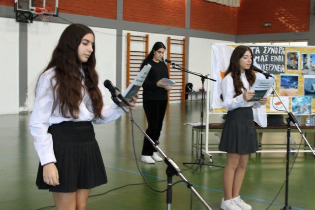 Στο σχολείο μας πραγματοποιήθηκε εκδήλωση-διαμαρτυρία με αφορμή την ανακήρυξη του ψευδοκράτους στην Κύπρο. Οι μαθητές, μέσα από ποιήματα και τραγούδια, εξέφρασαν την αγάπη τους για την πατρίδα και τη βαθιά επιθυμία τους για επανένωση και ειρήνη. Η εκδήλωση αποτέλεσε μια συγκινητική υπενθύμιση της ιστορικής αλήθειας και της ανάγκης να διατηρούμε ζωντανή τη μνήμη και τον αγώνα για μια ελεύθερη και ενωμένη Κύπρο.