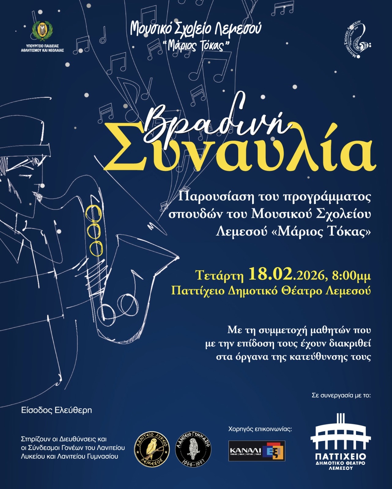 | 16/02/2026 | Παρουσίαση Προγράμματος Μουσικού Σχολείου - Βραδινή Συναυλία | Ενημερωτικό Έντυπο |
