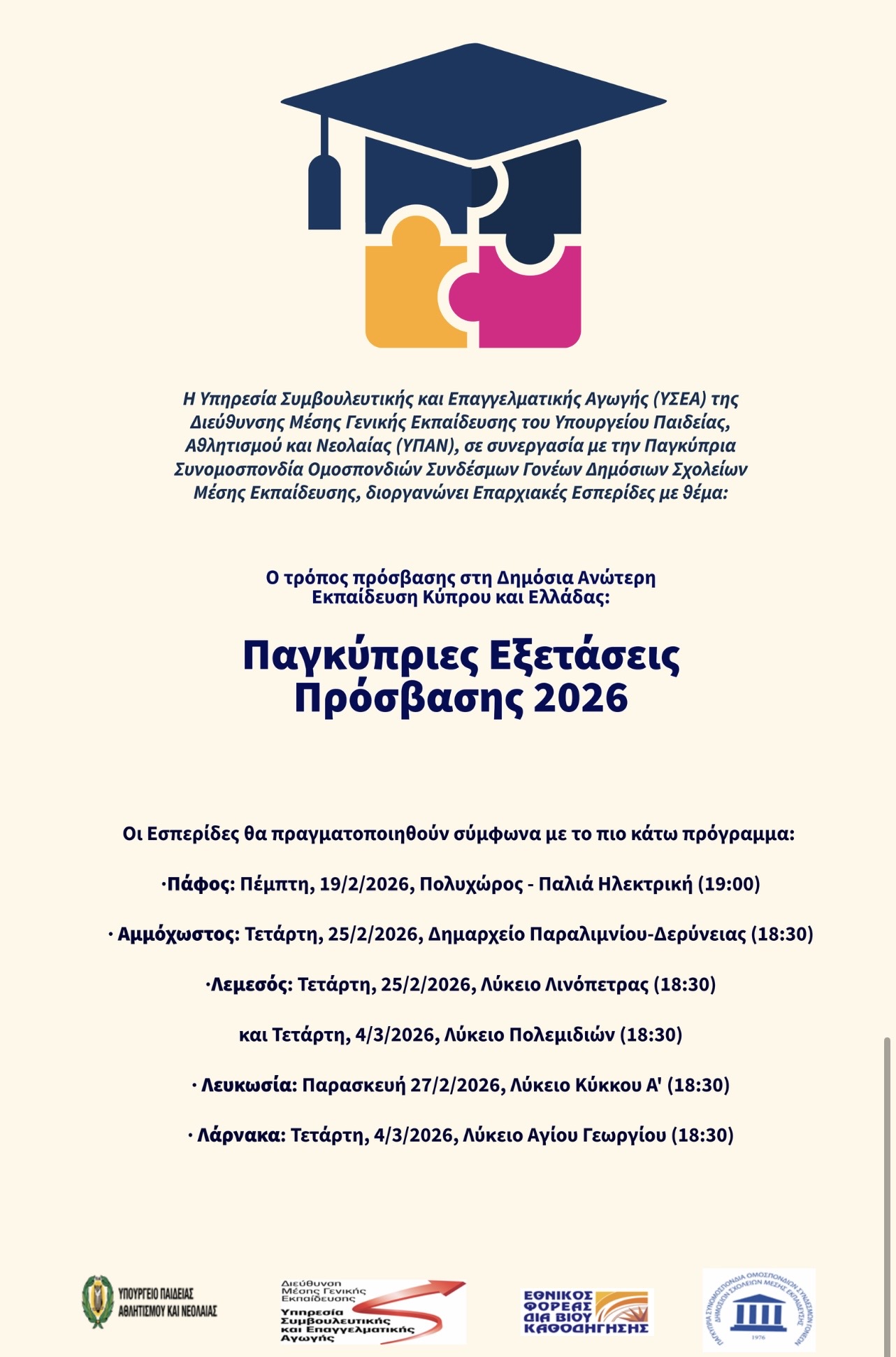 | 16/02/2026 | Παγκύπριες Εξετάσεις Πρόσβασης 2026 | Ενημερωτικό Έντυπο |