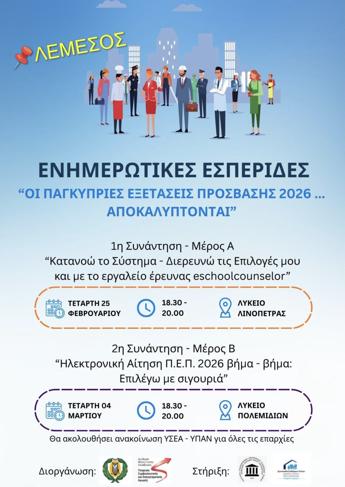 | 25/02/2026 | Ενημερωτικές Εσπερίδες Για τις Παγκύπριες Εξετάσεις 2026 | Ενημερωτικό Έντυπο |