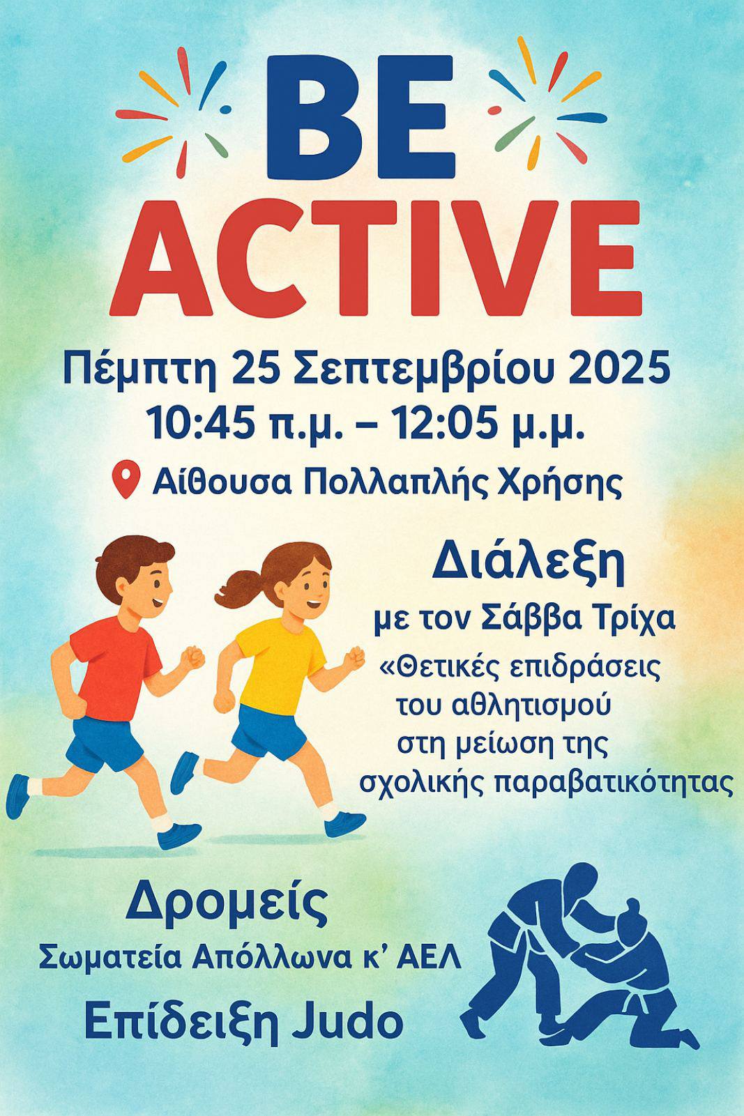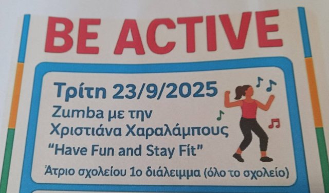 Το σχολείο μας συμμετείχε στην Ευρωπαϊκή Εβδομάδα Αθλητισμού – Be Active, με δραστηριότητες που προώθησαν την άσκηση, τη συνεργασία και τη χαρά της συμμετοχής. Μαθητές και εκπαιδευτικοί έγιναν μια ομάδα και απέδειξαν ότι η κίνηση είναι τρόπος ζωής!