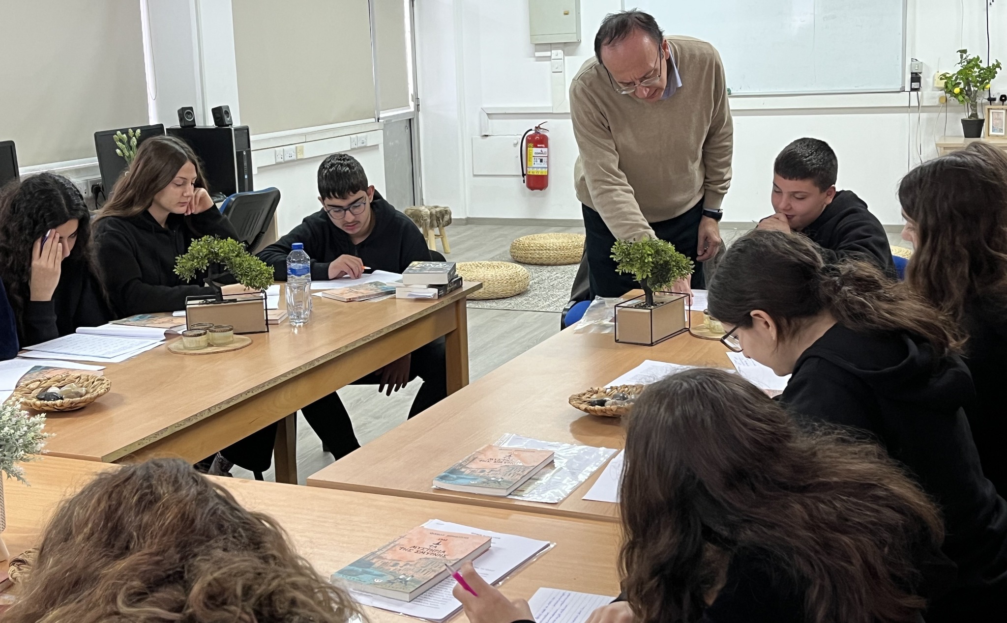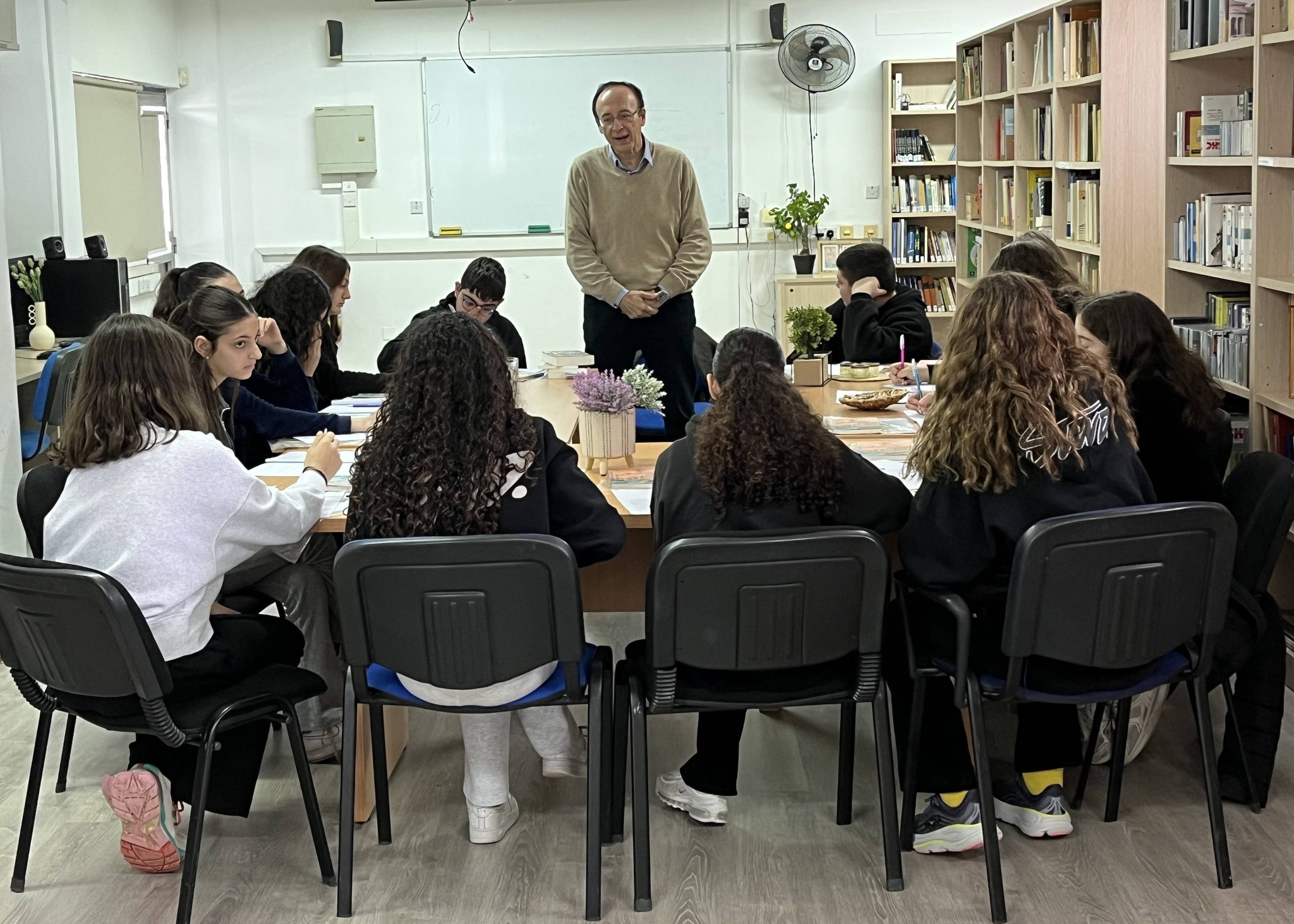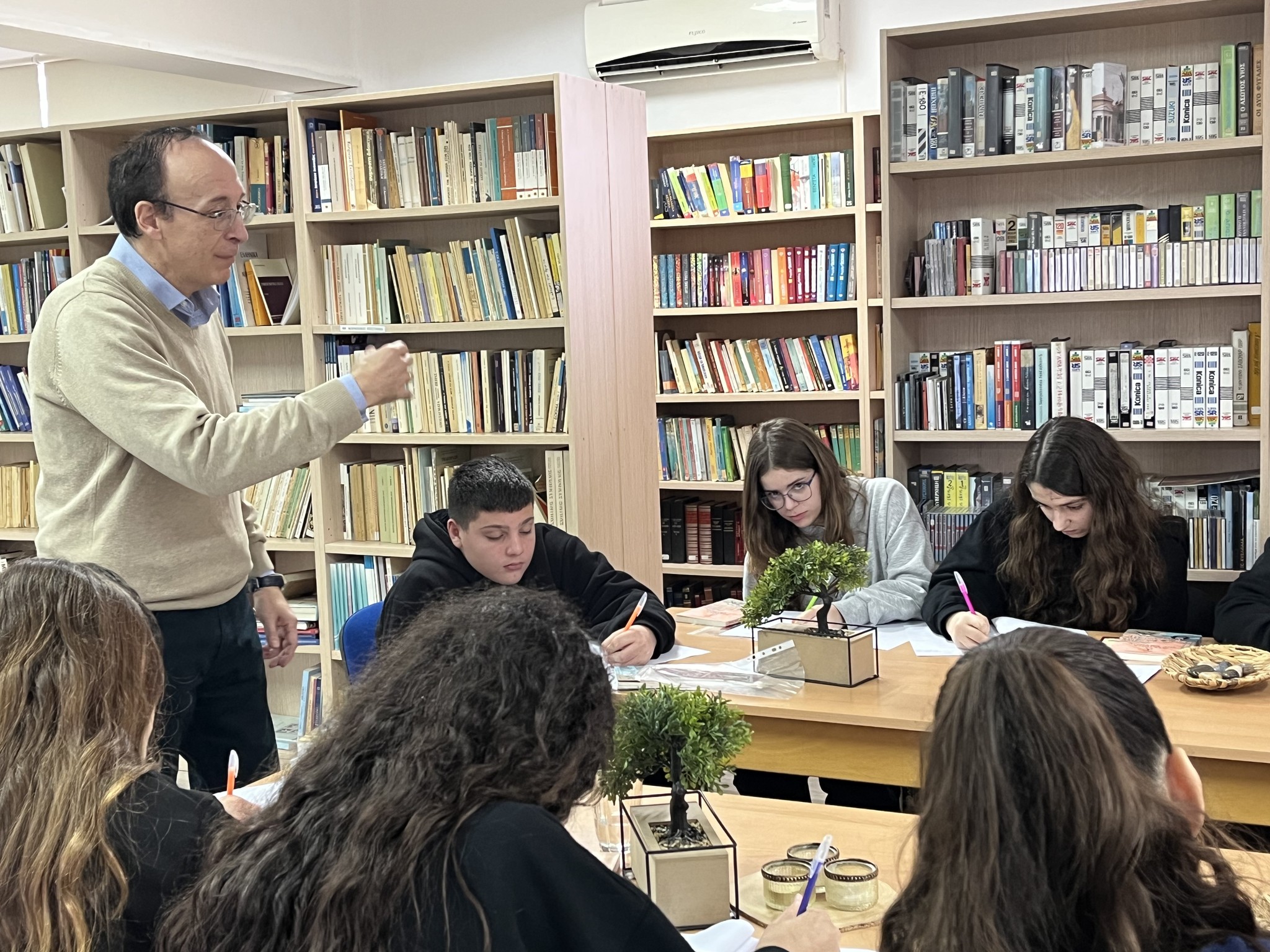 Στο πλαίσιο των δράσεων του σχολείου μας για την καλλιέργεια της φιλαναγνωσίας, είχαμε την τιμή και τη χαρά να φιλοξενήσουμε τον συγγραφέα Δρα Θάνο Κονδύλη, την Πέμπτη 29/1/2026, παραμονή της Γιορτής των Γραμμάτων. Μια ομάδα μαθητών/τριών και των τριών τάξεων του Γυμνασίου μας, συμμετείχαν σε εργαστήριο δημιουργικής γραφής με τον διακεκριμένο συγγραφέα, εγκαινιάζοντας έτσι μια σειρά δράσεων στον ανανεωμένο χώρο της βιβλιοθήκης του σχολείου μας. Με αφορμή τη μελέτη του βιβλίου του Θάνου Κονδύλη «1922. Τα μυστήρια της Σμύρνης», τα παιδιά εκφράστηκαν με ποικίλους τρόπους, εκτιμώντας ακόμη περισσότερο τον εννοιολογικό πλούτο και την ακρίβεια της Ελληνικής Γλώσσας. Γενικότερα, συμμετείχαν σε ένα δημιουργικό ταξίδι φαντασίας, περιπέτειας και αναζήτησης λέξεων, μα και απολαυστικής γνωριμίας και διαλόγου με τον πολύπλευρο αυτό δημιουργό. Ιδιαίτερες ευχαριστίες στον κ Θάνο Κονδύλη και σε όλους/ες όσοι/ες συνέβαλαν στην υλοποίηση αυτής της δράσης.