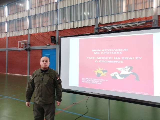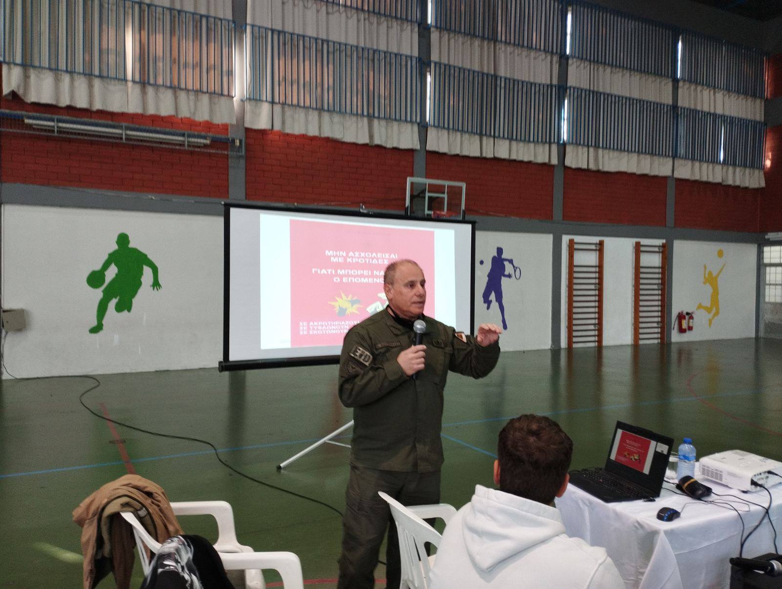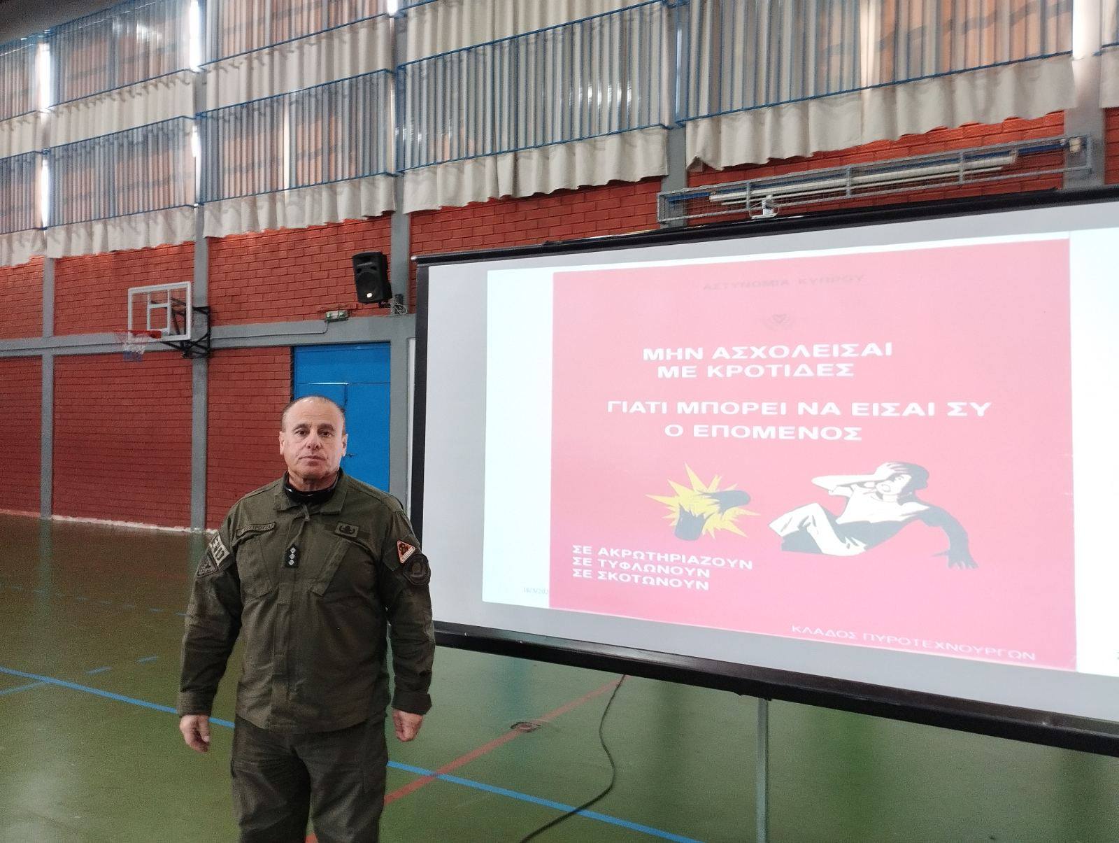 Την Δευτέρα 16 Μαρτίου, στο σχολείο μας πραγματοποιήθηκε ενημερωτική ομιλία από μέλος του Κλάδου Πυροτεχνουργών της Αστυνομίας, με θέμα τους κινδύνους που συνδέονται με τη χρήση κροτίδων ενόψει του Πάσχα 2026.