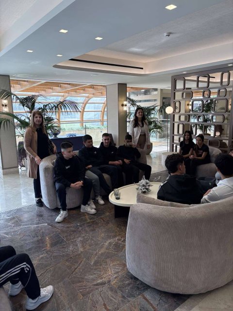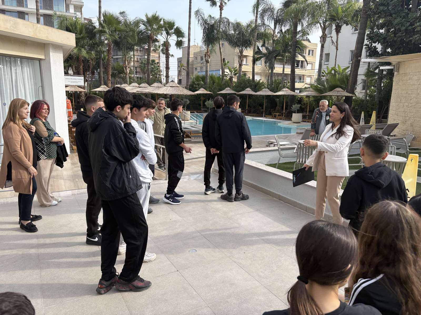 Μια τρίτη ομάδα με μαθητές/τριες της Γ’ τάξης επισκέφθηκαν το Ξενοδοχείο Atlantica Oasis, όπου είχαν την ευκαιρία να γνωρίσουν από κοντά τη λειτουργία ενός σύγχρονου ξενοδοχειακού οργανισμού και να ενημερωθούν για τις επαγγελματικές προοπτικές στον τομέα του τουρισμού. Ένα μεγάλο ευχαριστώ στον Διευθυντή του ξενοδοχείου κ. Βάκη Καραντώνη και στην κ. Ιωάννα Γεωργακοπούλου, Υπεύθυνη Συμμόρφωσης σε θέματα Ποιότητας, Ασφάλειας και Βιωσιμότητας, για τη θερμή φιλοξενία και την πολύτιμη ενημέρωση. Την ομάδα συνόδευσαν η Διευθύντρια κ. Ευρούλα Πρωτοπαπά και η Β.Δ. κ. Βανθούλλα Σολομωνίδου Πιττάκα.
