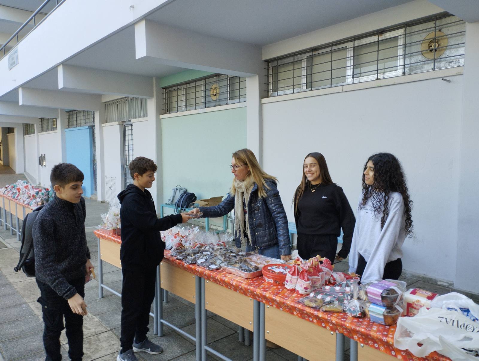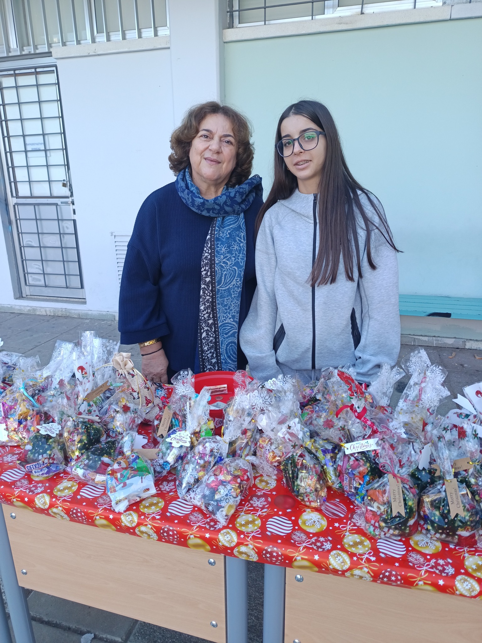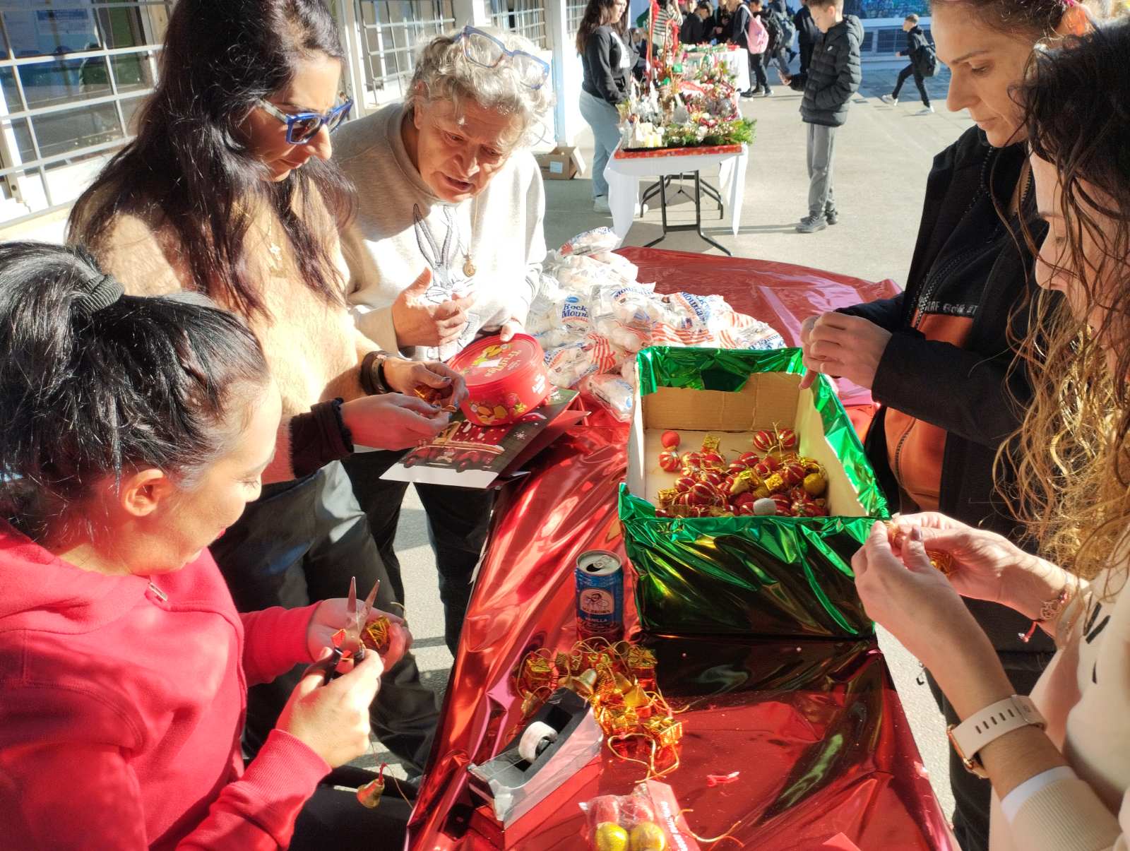 Γλυκά, μπισκότα, σοκολατάκια και χριστουγεννιάτικες κατασκευές γέμισαν τον χώρο με χαμόγελα και γιορτινή διάθεση, με σκοπό τη συγκέντρωση χρημάτων για οικογένειες που το έχουν ανάγκη.