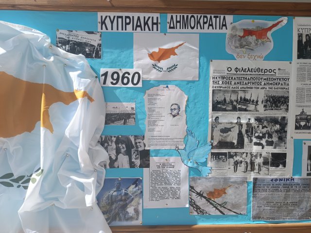 Με αφορμή την Επέτειο της 1ης Οκτωβρίου, οι μαθητές του σχολείου μας συμμετείχαν σε ενδοτμηματικές εκδηλώσεις, τιμώντας την Ημέρα Ανεξαρτησίας της Κυπριακής Δημοκρατίας. Μέσα από παρουσιάσεις, προβολές και συζητήσεις, οι μαθητές είχαν την ευκαιρία να γνωρίσουν καλύτερα τα ιστορικά γεγονότα και τη σημασία της ημέρας για την πατρίδα μας.