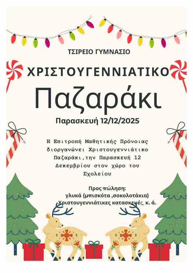 25.11.2025 Χριστουγεννιάτικο Παζαράκι στις 12 Δεκεμβρίου 2025